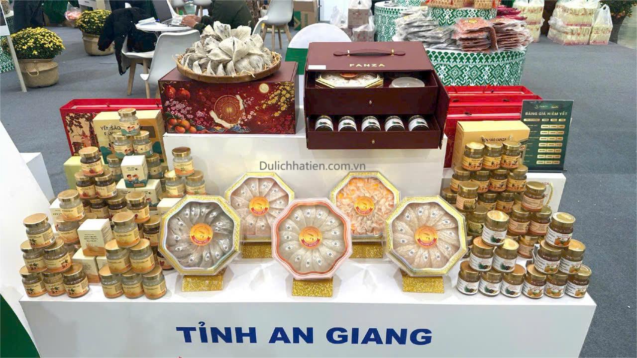 Bên cạnh đó, nhiều sản phẩm OCOP tiêu biểu của địa phương như: khô mực, tôm khô, cá bè, cá đỏ, ba khía, cà xỉu, bánh tét truyền thống, tiêu Hoàng Dũ, Yến sào FANZA…được trưng bày, giới thiệu, góp phần lan tỏa giá trị văn hóa ẩm thực và thương hiệu Hà Tiên đến du khách trong nước và quốc tế.