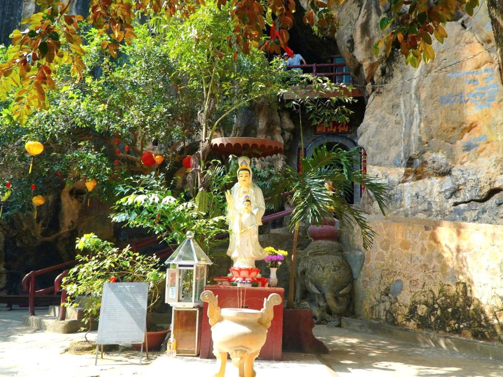 Tọa lạc trong lòng động đá vôi, chùa Tiên Sơn sở hữu không gian thanh tịnh, mát lành. Ánh sáng tự nhiên xuyên qua khe đá hòa cùng tiếng chuông chùa tạo nên cảm giác an yên hiếm có.