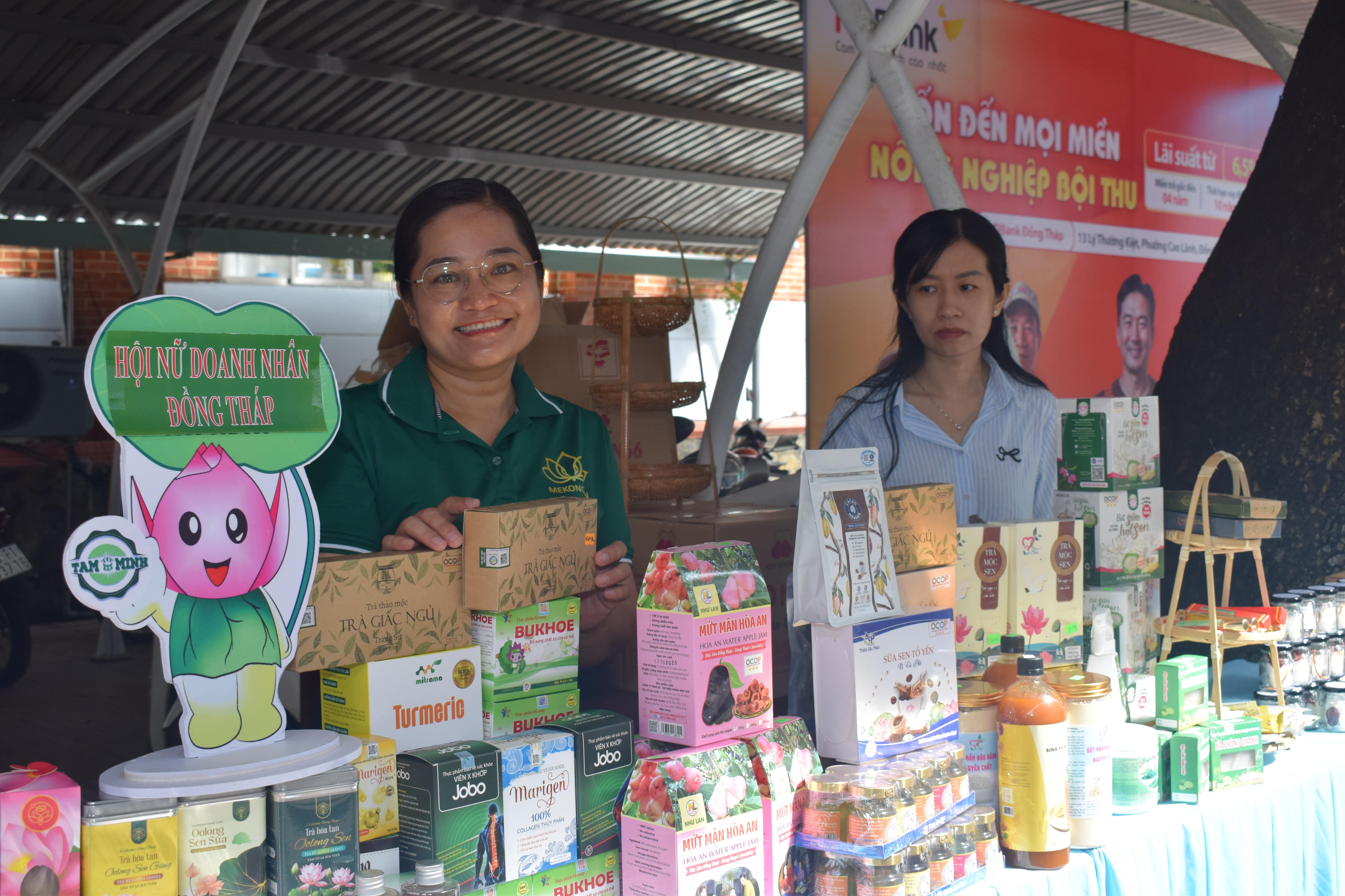 Đại diện tham dự là Bà Nguyễn Thị Nga - Phó Chủ tịch Hội Nữ Doanh Nhân Đồng Tháp, cùng các hội viên đã giới thiệu nhiều sản phẩm OCOP, sản phẩm khởi nghiệp của phụ nữ và đặc sản Đồng Tháp được chế biến, đóng gói chuyên nghiệp.