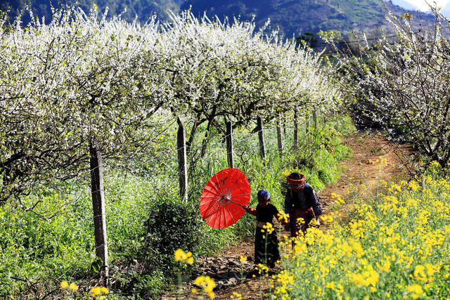 Du lịch Mộc Châu mùa hoa Đào, Hoa Mận cho chúng ta một cảm giác khó tả với cảnh đẹp đến nao lòng. Cách hoa đào màu đỏ hồng tạo cho con người cảm giác thật ấm áp, trộn lẫn màu trắng tinh khiết của hoa mận giữa mùa xuân tràng đầy nắng ấm, nhìn xa xa là những lưng đồi chè xanh bất tận. Mọi thứ như hút vào trong tầm mắt, làm cho lòng người lữ khách ngẩn ngơ, tang chảy giữa cảnh núi rừng mùa xuân của cao nguyên Mộc Châu.