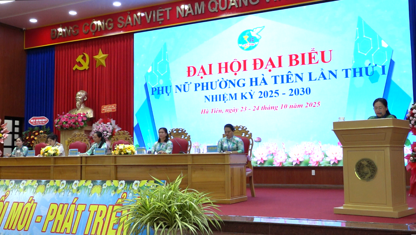 Sáng 24/10, Hội LHPN phường Hà Tiên long trọng tổ chức Đại hội Đại biểu Phụ nữ phường lần thứ I, nhiệm kỳ 2025-2030. Tham dự Đại hội có đồng chí Trương Thanh Thúy - Tỉnh ủy viên, Phó Chủ tịch Ủy ban MTTQ Việt Nam tỉnh, kiêm Chủ tịch Hội LHPN tỉnh An Giang; đồng chí Nguyễn Lưu Trung - Tỉnh ủy viên, Bí thư Đảng ủy phường Hà Tiên, cùng lãnh đạo MTTQ, các ban, ngành, đoàn thể phường và hội viên phụ nữ tiêu biểu trên địa bàn phường.