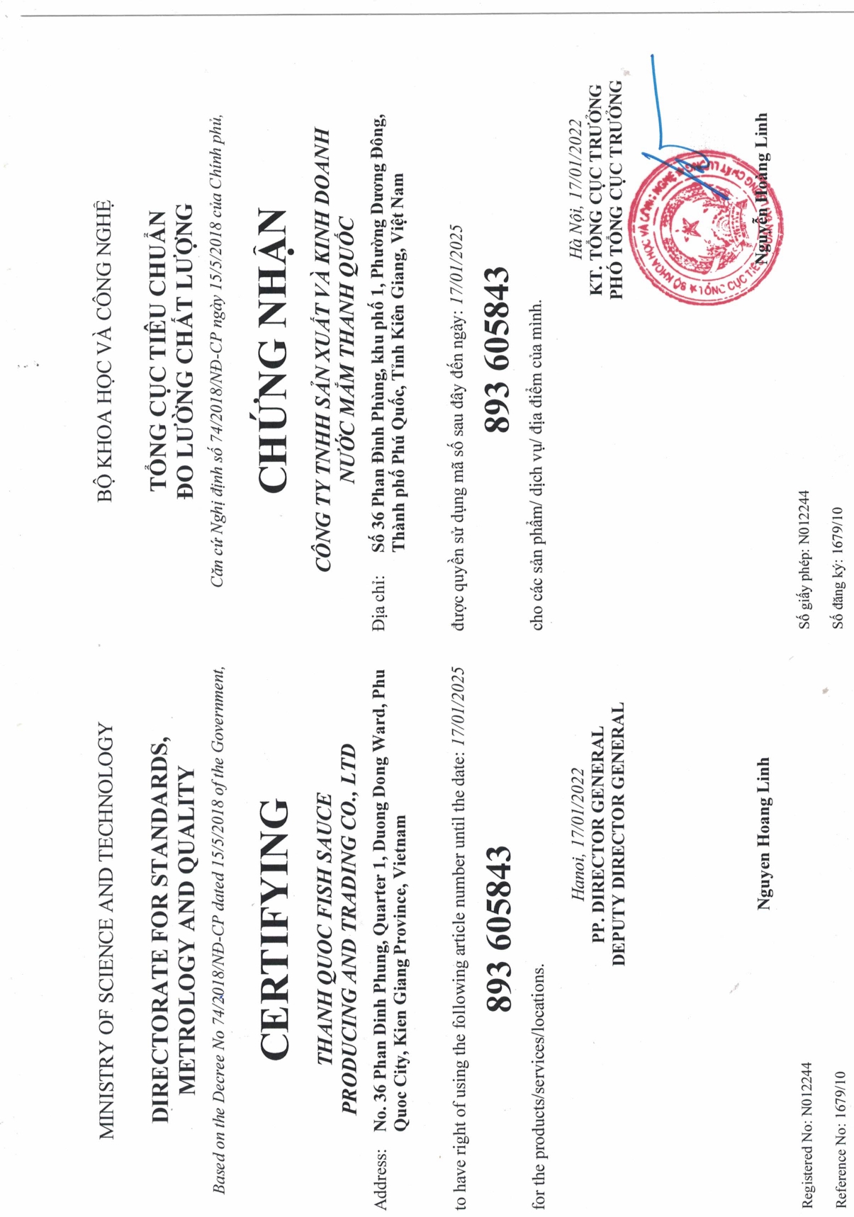Công ty TNHH Sản Xuất Và Kinh Doanh Nước Mắm Thanh Quốc tự hào là một trong những công ty đầu tiên sản xuất nước mắm Phú Quốc của Việt Nam, có bề dày lịch sử hơn 100 năm với 4 thế hệ kế thừa truyền thống.