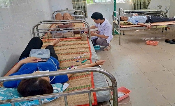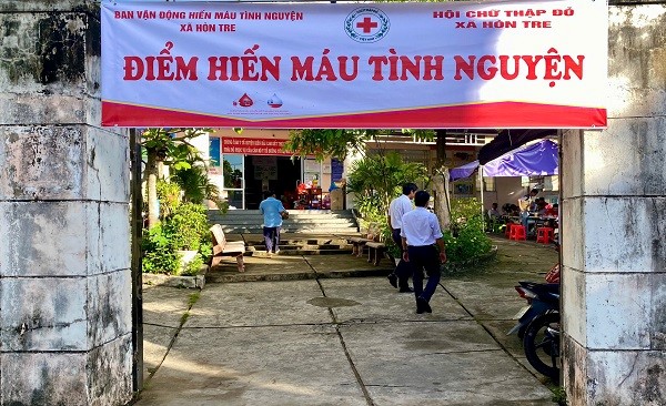 Quang cảnh: Cán bộ, công chức, viên chức, đoàn viên, hội viên, thanh niên, lực lượng vũ trang và nhân dân trên địa bàn xã Hòn Tre tham gia hiến máu