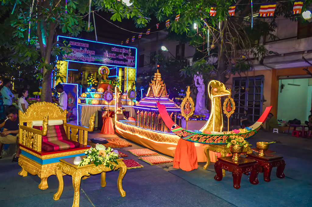 Ngày thứ nhất: Mỗi gia đình đều dọn dẹp nhà cửa khang trang, lau chùi bàn thờ tổ tiên sạch sẽ, trang hoàng lộng lẫy. Dọn bốn chén cơm ngon trên mỗi bàn, đốt đèn rồi mời mọi người trong gia đình cùng cúng. Mọi người cùng nhau khấn vái và rót trà để mời linh hồn những họ hàng đã quá cố về nhà ăn uống, nghỉ ngơi. Buổi cúng đầu ngày gọi là cúng tiếp đón. Đến chiều, họ tắm rửa sạch sẽ, cúng linh hồn ông bà và sau đó mời ông bà cùng họ đi vào chùa nghe sư sãi tụng kinh lấy phước. Tại chùa phần lễ sắc thái tôn giáo, tín ngưỡng được tổ chức, hoạt động khác mang tính hội hè như dù kê, Lò-khol Bác-sắc, múa Lâm-thol…