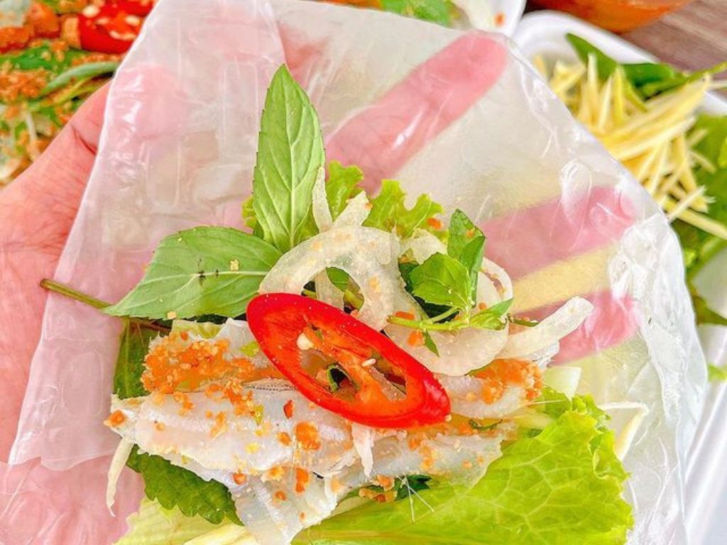 Sẽ thật là thiếu sót lớn nếu đặt chân đến Biển Long Hải xinh đẹp mà bỏ lỡ món gỏi đặc sản từ một loại cá trắng muốt có tên là Gỏi cá mai.