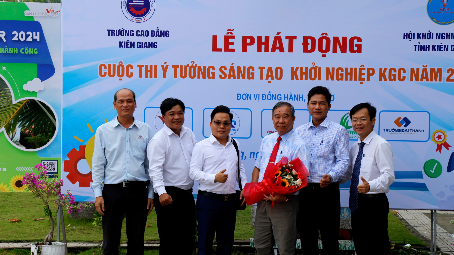 Tham dự buổi lễ có Tiến sĩ Nguyễn Xuân Niệm - Phó giám đốc Sở Khoa học công nghệ - Chủ tịch Hội khởi nghiệp ĐMST Kiên Giang, Tiến sĩ Lê Trung Kiên - Phó hiệu trưởng nhà trường, Thạc sĩ Lê Nhật Quang - Giám đốc trung tâm hỗ trợ khởi nghiệp KGC, Ban lãnh đạo các doanh nghiệp tài trợ, đồng hành với cuộc thi cùng hơn 100 em sinh viên tham gia hội thi.