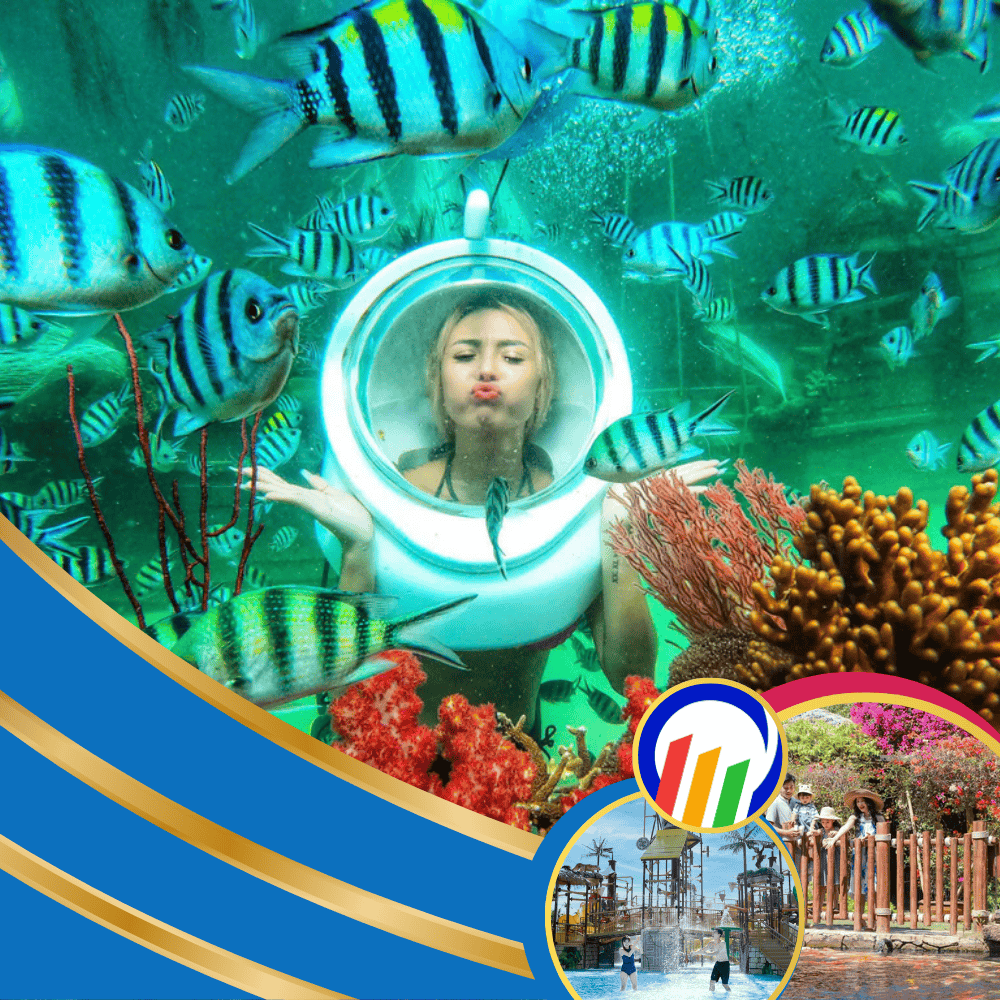 Cáp Treo Hòn Thơm + Đi Bộ Dưới Biển Ngắm San Hô – Combo VIP (Có Buffet) mang đến cho du khách những trải nghiệm đẳng cấp tại thiên đường biển đảo Phú Quốc. Với vé VIP, bạn không chỉ được tận hưởng hành trình chinh phục cáp treo Hòn Thơm – tuyến cáp treo vượt biển dài nhất thế giới, mà còn có cơ hội đi bộ dưới biển chiêm ngưỡng thế giới san hô đầy màu sắc, vui chơi tại Aquatopia Water Park hiện đại, và thưởng thức bữa buffet phong phú, đa dạng hương vị. Combo VIP mang lại sự thoải mái, dịch vụ chu đáo và những trải nghiệm trọn vẹn nhất cho bạn và gia đình.